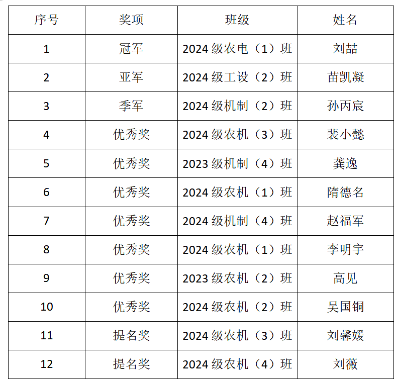 舞台灯光闪耀,选手们激情演绎,观众掌声雷动舞台上,他们的歌声或悠扬婉转,如潺潺流水;或激昂澎湃,似汹涌波涛。每一个音符都承载着青春的活力。经过第一轮合唱比赛以及第二轮个人展示的精彩比拼,2024级农电(1)班刘喆荣获冠军,2024级工设(2)班苗凯凝荣获亚军,2024级机制(2)班孙丙宸荣获季军。