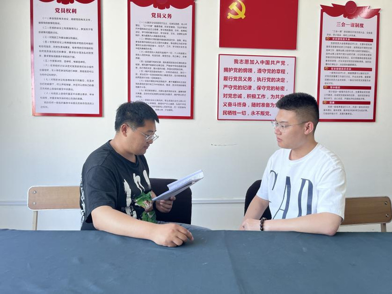 员工党支部书记与毕业生党员重温入党谈话,要求毕业生党员铭记入党动机,牢固树立“四个意识”,坚定“四个自信”,进一步加强对自我使命和责任的认识,怀揣着更加饱满的热情和坚定的信念,践行对党的庄严承诺。