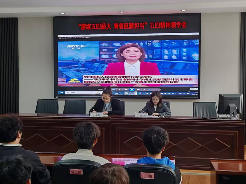 为引导青年员工传承和弘扬五四精神,激发爱国情怀与时代责任感,学院开展“赓续五四薪火,青春挺膺担当”五四精神领学会活动,由分团委副书记王小婷和辅导员卢佳欣担任领学员。此外,各班级团支部通过主题团日活动形式,组织青年员工深入学习五四运动历史、重温入团誓词,引导员工从历史中汲取奋进力量。