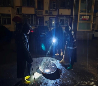 雨夜坚守,保障社区排水