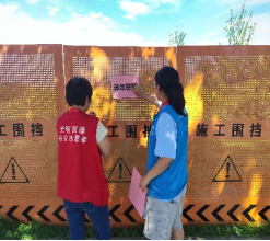 在社区巡河工作中,杨婉钰与志愿者团队重点关注辖区河道水位变化。因强降雨导致河道河水上涨,为避免居民靠近河道发生危险,社区设置施工围挡进行隔离。杨婉钰积极参与围挡警示标识张贴工作,与同伴协作,将“请勿攀爬” 警示标语逐一固定在围挡显著位置,提醒居民远离危险区域,从细微处织密安全防护网 。
