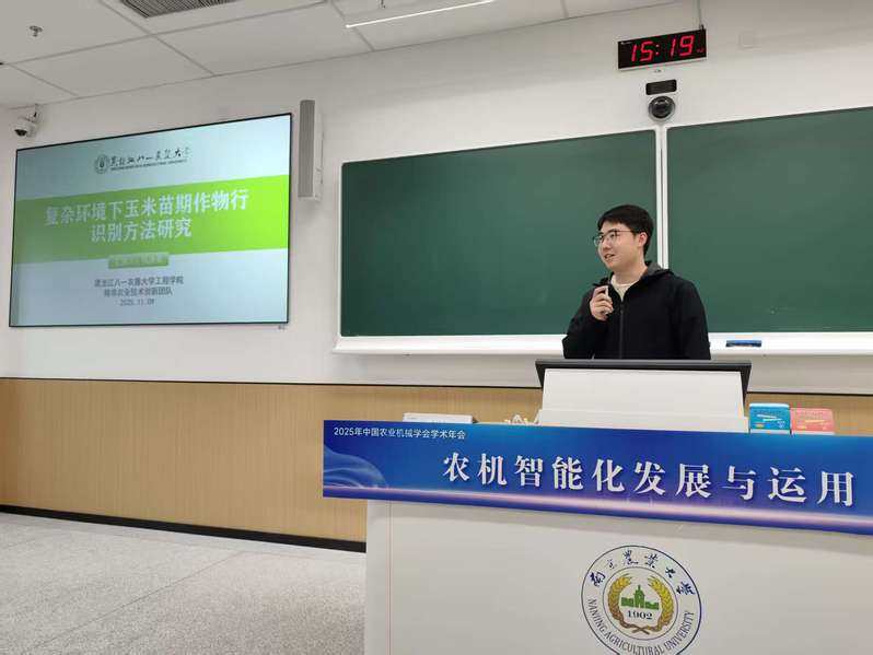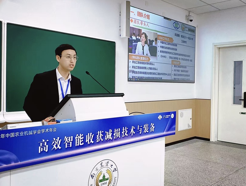 学院多位教师在专题分会场作报告。宋江和巩海亮在农机智能化发展与运用分会场做《平贝母机械化采收装备研制及其相关理论研究》和《复杂环境下玉米苗期作物行识别方法研究》报告。王福成在智慧植保及“低空农业”应用技术与装备分论坛做《低空经济中的人才培养与法规政策浅析》的报告。张东明在高效智能收获减损技术与装备分论坛做《谷子联合收获机分层清选技术与装备研究》的报告。庄卫东教授主持了农机智能化发展与运用分会场。