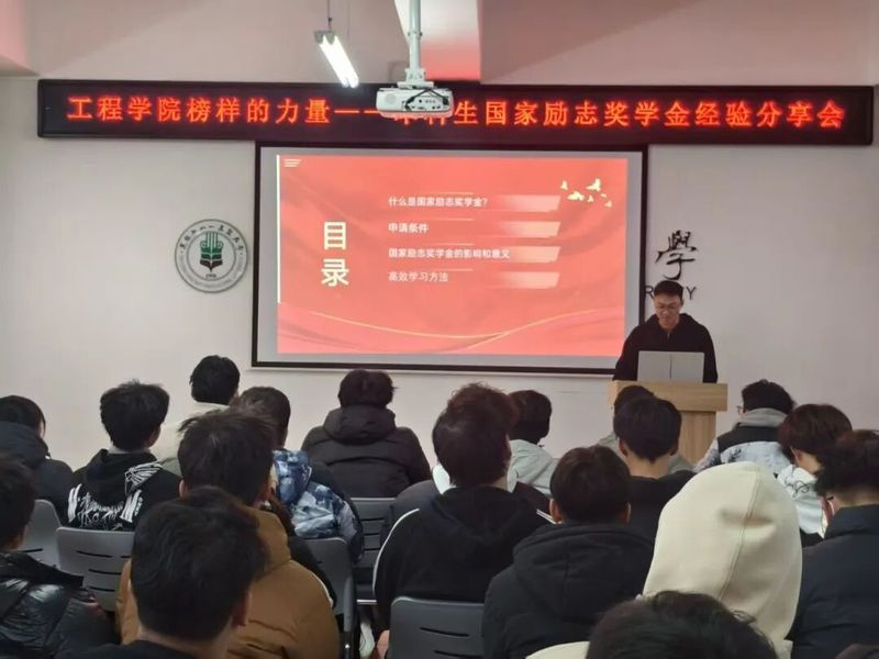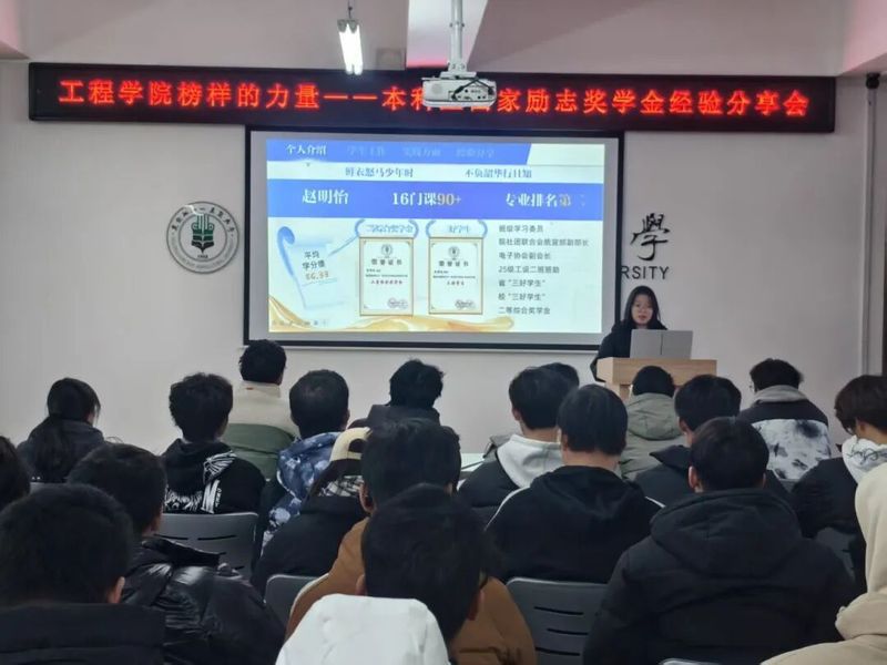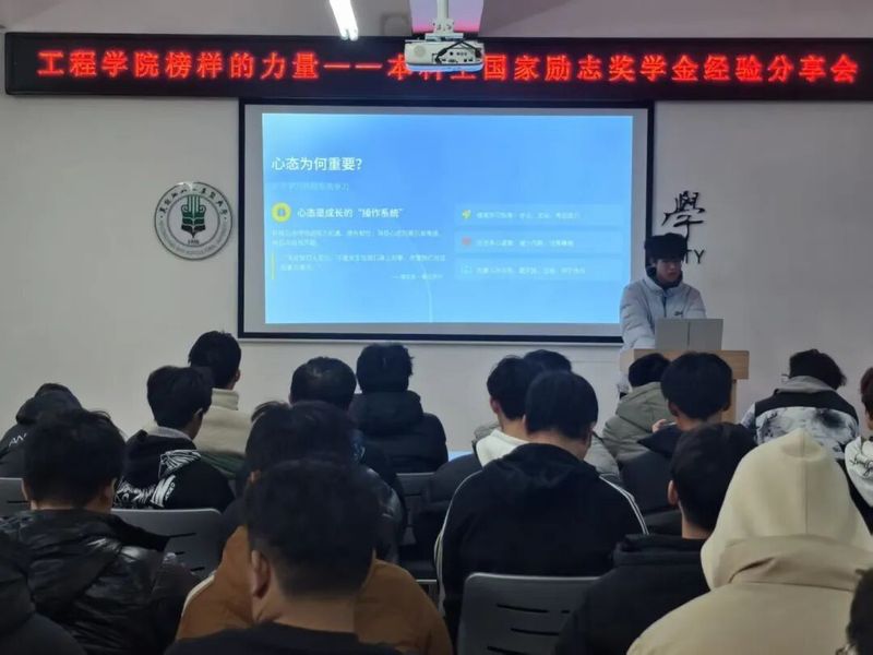 为发挥国家励志奖学金获得者的示范引领作用,帮助同学们明确成长方向、提升综合素养,11月16日,学院在员工公寓1—2号楼连廊举办“榜样的力量——国家励志奖学金获得者经验分享会”。本次分享会邀请到22级农业机械化及其自动化专业张鑫键等4名2024-2025学年国家励志奖学金获得者,分别从综合成绩提升、志愿服务实践、奖学金申请、心态保持四个维度分享心得。