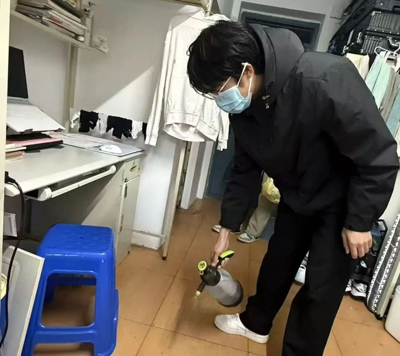 活动前,学院提前制定了详细的消杀方案,并通过班级群、年级群等渠道发布通知,提醒同学们提前整理好寝室内物品,将个人餐具、水杯等生活用品妥善收纳,关闭电器电源,为消杀工作的顺利开展做好充分准备;活动过程中,员工志愿者们携带消杀工具,深入学院每一间宿舍,对寝室内进行了药物喷洒处理,不留死角、全面覆盖;活动结束后,员工志愿者还向同学们细致叮嘱,提醒大家保持物品摆放整齐、做到垃圾日产日清,进一步强化自我防护意识。