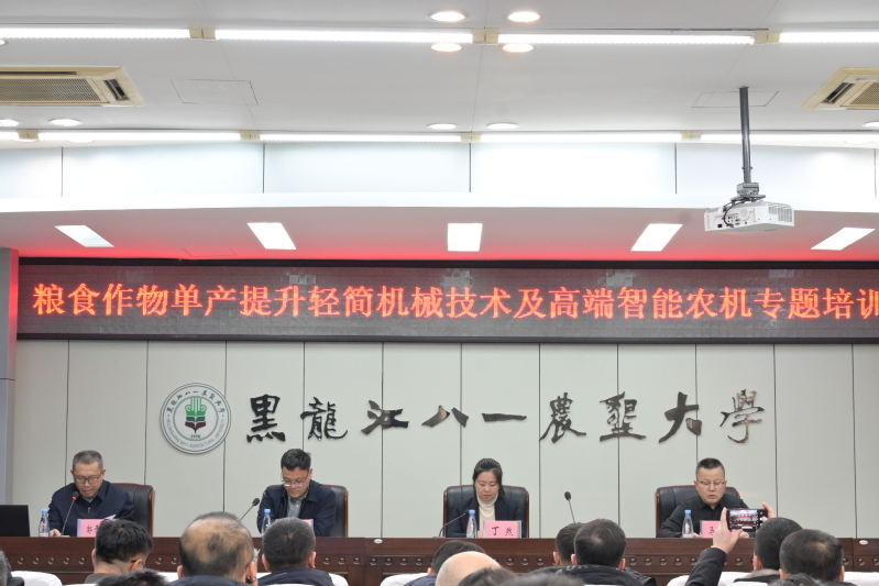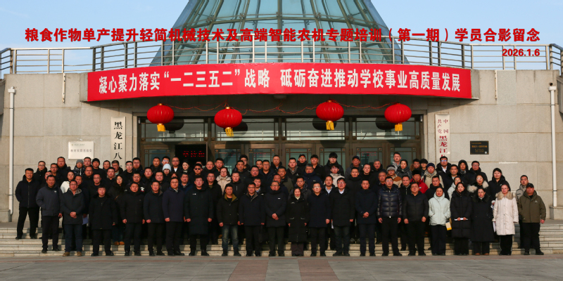 为深入贯彻落实我省粮油作物大面积单产提升工程有关要求,按照省农业农村厅工作部署,2026年1月6日,全省粮食作物单产提升轻简机械化技术及高端智能农机专题培训在本校召开。省农业农村厅农机管理处副处长丁然、北大荒农垦集团有限公司农业发展部副部长刘再奇、省农机产业技术体系首席专家郭雪峰、省农机推广总站、北大荒农垦集团相关农场、各市县农机推广中心及英国上市公司365相关负责同志近130人参与了此次培训。